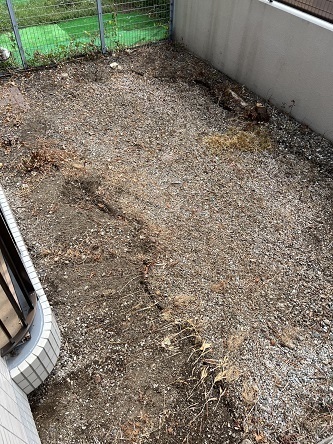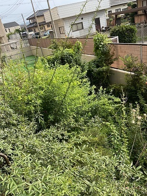 あわせてお庭のご相談もいただきました。窓の外は背の高い木や雑草が生い茂り、日差しも入りにくい“ジャングル”状態でしたが、伐採・抜根・草刈りを行い、写真のような見通しのよい更地風のお庭へと変身。管理もしやすくなり、「これで安心して売却・活用の準備ができます」と大変喜んでいただけました。